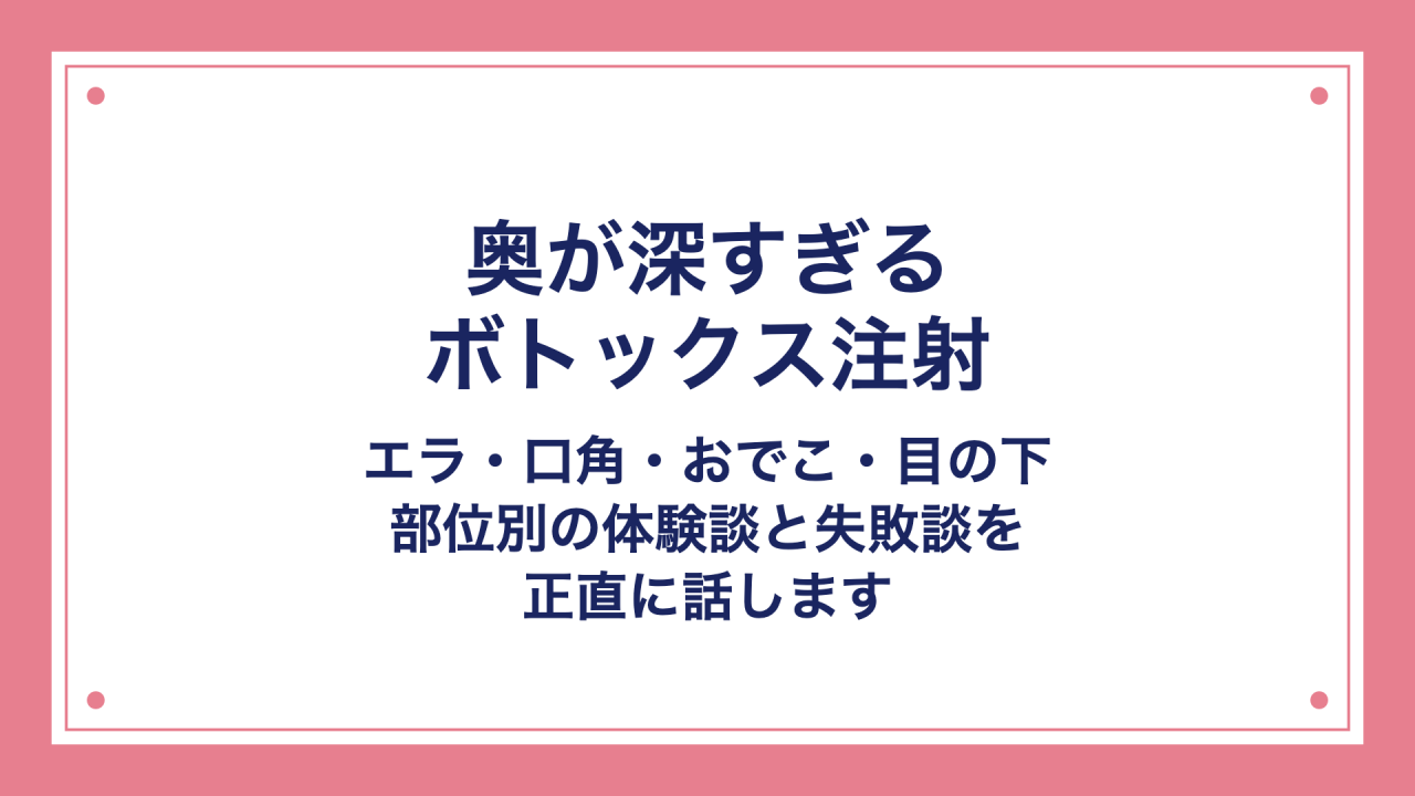 満足した体験もあれば、「しまった!」と思うような失敗体験もあり。今回はそのすべてを正直に書いていきます。これからボトックスを検討している方の参考になれば嬉しいです🤍