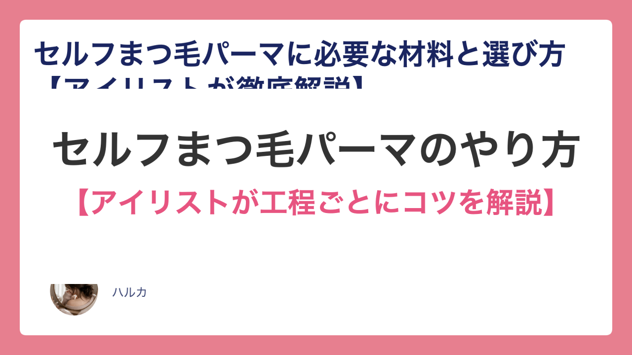 この記事では、セルフまつ毛パーマの手順を工程ごとに、アイリストとして気をつけてほしいポイントを添えながら解説します。材料や道具の選び方についてはこちらの記事で詳しく説明しているので、まだ読んでいない方はそちらから読んでいただくことをおすすめします。